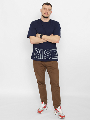Объемная футболка оверсайз из кулирки повышенной плотности длиной до бедер. Рукав до локтя. Круглая горловина обработана узкой притачной обтачкой из рибаны с эластаном. Горловина декорирована принтом "возврата нет".